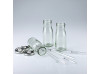 4 Glasfläschchen,4 Trinkhalmdeckel EINGELOCHT, 4 Trinkhalme GLASKLAR, mittel, inkl. Reinigungsbürste